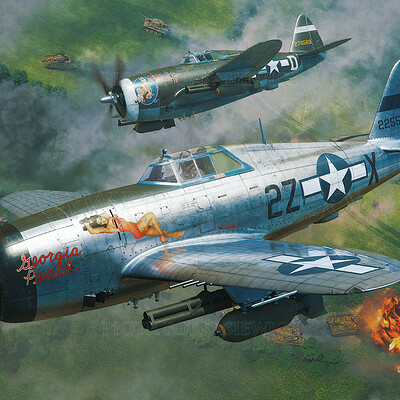 Aviation Classics Monthly magazine Spitfire cover / spread illustration
