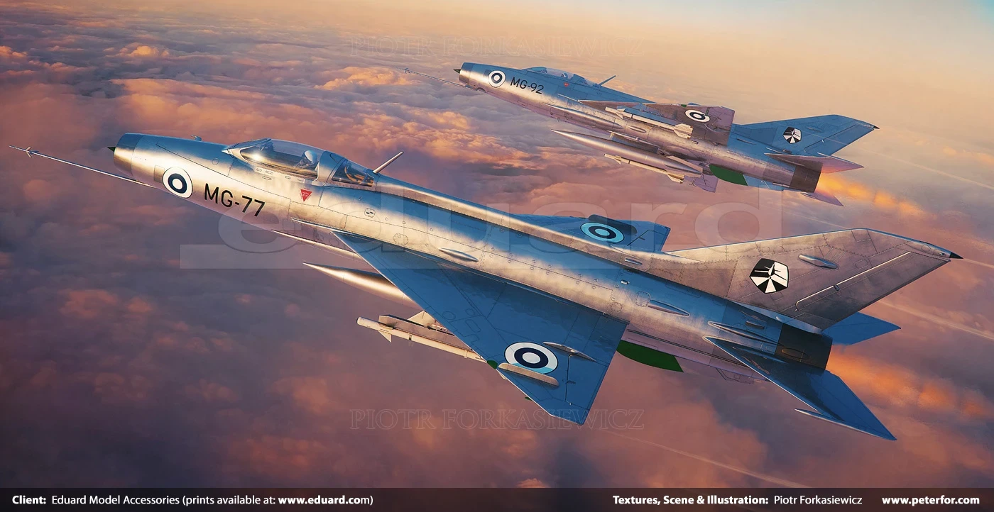 Boxart for Eduard Model Accessories MiG-21-F-13 kit. CAD model provided by manufacturer.