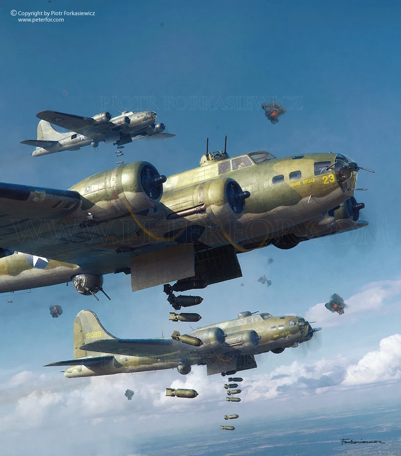 Unused book cover for the book about the early days of the Mighty Eight in Europe. The picture depicts first mission of the 8th US Air Force on the occupied Europe - Rouen (Sotteville) on August 17th 1942.