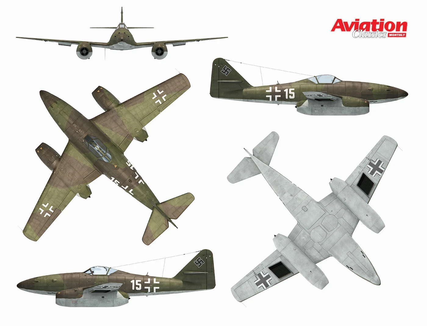 Cover / spread illustration for Aviation Classics Monthly magazine. Me 262 model is purchased. Marauder model by Adam Tooby.